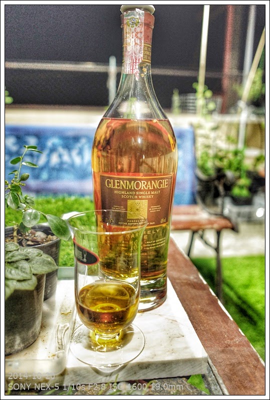 เริ่มที่สีกันก่อน ออกทางทองแดงเข้มๆ คงเป็นเพราะ Extra Matured ใน Sherry Cask ตามที่เขียนไว้ข้างกล่อง ขา ไหลค่อนข้างหนืดใช้ได้เลยทีเดียวครับ